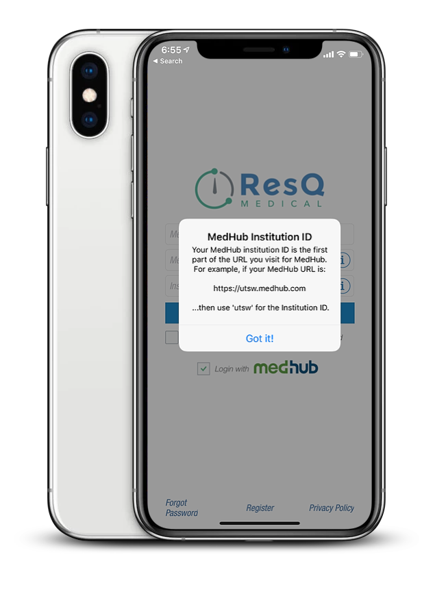 MedHub institutions who have enrolled to use ResQ can now login to the app using their MedHub credentials. Once a resident downloads the app from the App Store and enters their MedHub username and MedHub “Passkey” to login to the app, their hours will record automatically. At the conclusion of each shift, those hours will sync directly into MedHub.
