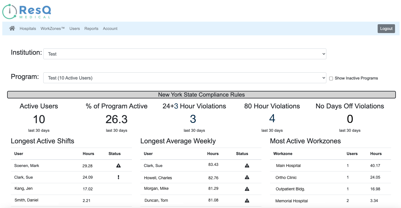 Based on requests from multiple programs and institutions, ResQ Analytics now addresses NY State work hour rules. The update now displays work hour violations specific to the state if New York, including 24+3 hours and 1 day off in 7 (not averaged).