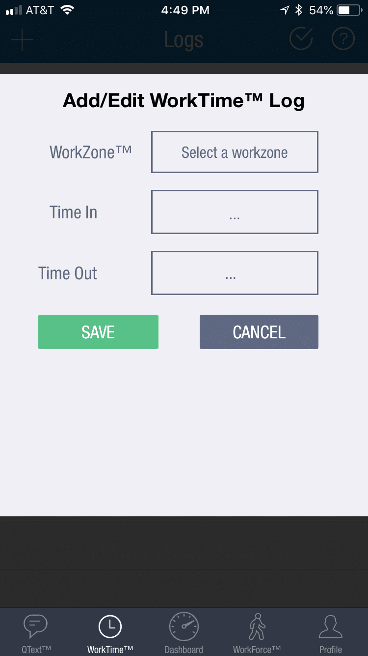 Add, Edit or Delete any WorkTime™ Log or WorkZone™.
