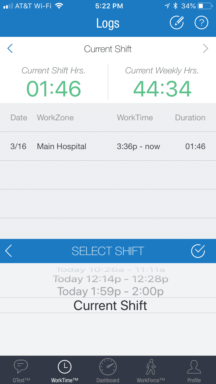 Instantly view any prior shift simply by clicking “current shift” at the top of the screen. Tapping on the “current shift” label at the top opens a selector view from which the user can easily scroll and select the desired shift.