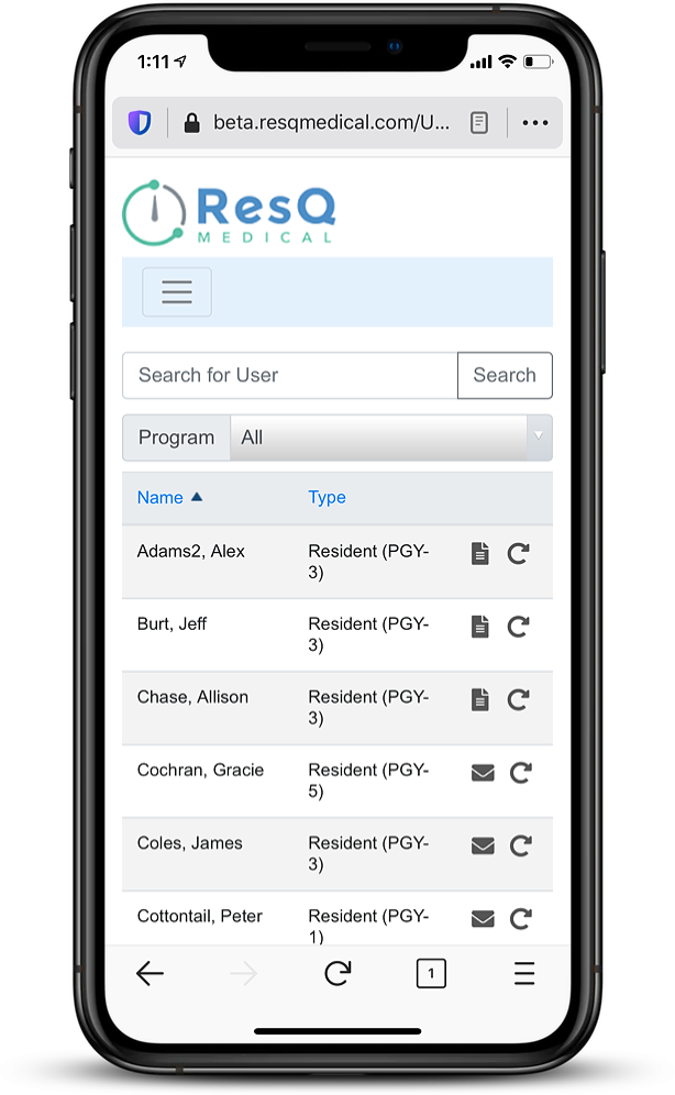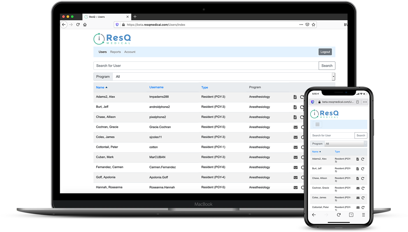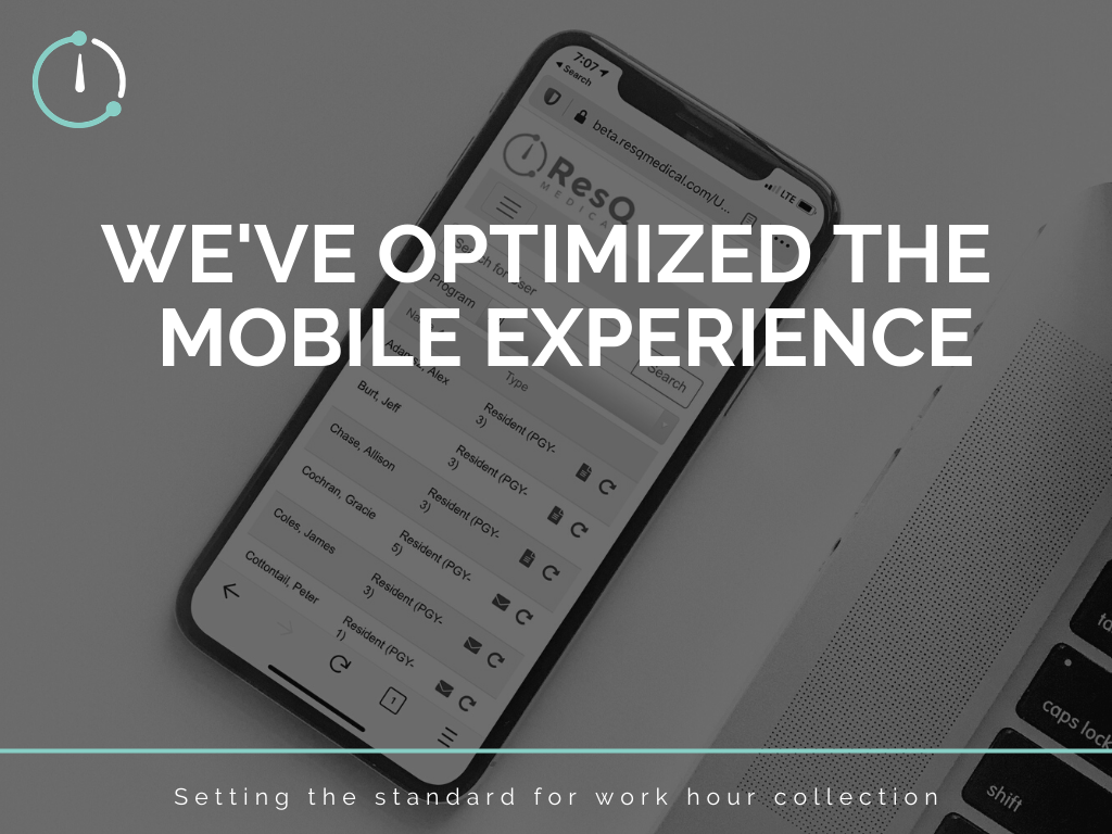 With this latest update, the functionalities that previously had to be completed on a desktop, can now also be completed from any mobile device. The ability to access ResQ from anywhere adds value to program administrators. When program administrators access ResQ on-the-go, they can view details about their entire program, invite residents to use the app, and generate resident work hour reports.